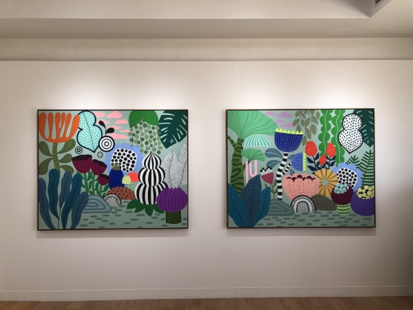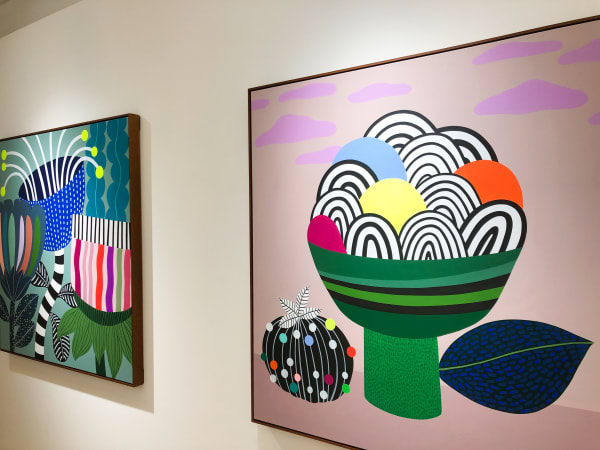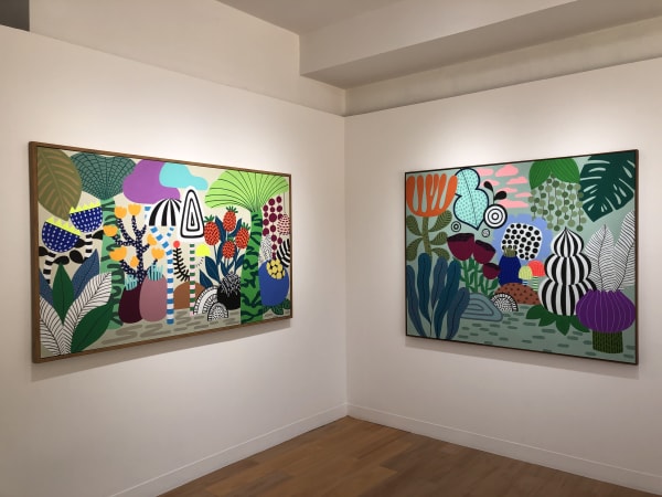Yihong HSU Happenings 3 June - 2 July 2023 Venue: Gallery Jeeum (LG-01, Office Block One, DB North Plaza, 92 Siena Avenue, Discovery Bay, Hong Kong) Opening Hours: Tuesday-Friday, 11am to 5pm; Saturday-Sunday, 11am to 6pm Gallery Jeeum is proud to present Happenings, a solo exhibition of artist Yihong Hsu’s latest series of works at the gallery. As with her previous paintings, Hsu draws inspiration from personal observations of and curiosity about nature and its parallels with the human life - What happens in the human world also happens in nature, and vice versa. The artist enjoys taking walks and paying attention to the intricate details in nature, which is also the very first crucial step that precedes her paintings we see today. During her outdoor excursions, Hsu likes to look, ponder, and imagine what is going on to each plant, flower and tree, each leaf, petal and branch. As she contemplates and wonders amidst lush green surroundings, she compares those up close in front of her to what is going on in the human world. The basics of nature and human life are essentially the same to Hsu. Rather than portraying the wider landscape scenery, it is the individual elements in nature that the artist is interested in investigating and translating onto the canvas. Each element of nature is depicted as an original character in her story. Each a character on its own. Putting the characters together, she tells the stories of nature which are equally stories in the human world - how they grow, compete, and strive to survive and reproduce. The resulting scenarios and happenings all depend on their specific species, looks and personalities: Random flowers that blossom in between dead leaves demonstrates a strong survival instinct. The repetitive course of seeds and nuts falling off trees exhibits the eventual start of a new life. Bigger trees breathing with smaller trees and vines wrapping around them reveals the codependency of separate entities. How did some plants evolve to grow thorns on their stems, but others didn’t? What does the height differences in the cluster of flowers from the same stalk denote? How far could the uncared-for bushes go as they overgrow to the sidewalks and beyond? Instead of humans, Hsu utilizes components of nature to paint the live action taking place every day. Gathering these profiles of different personalities together, she creates a series of dialogues and acts of play. The artist breaks them down into bold motifs of geometry, colours and patterns, accentuating not only the physical figure but more importantly the role each character plays in the set by exaggerating the lines and dots in each plant. This at the same time highlights the concept of community. No society is built by one single person. Every individual needs to play their part to make the community whole. A narration is first played out in the artist’s head before she turns them into sketches and eventually articulated on the canvases after much consideration - Who the protagonists are and which supporting players to go with them, coupled with careful composition of each character to avoid an overwhelming scene. Most of the time is spent on trials after trials of colour mixture and placement to find the right balance between the bright and dull, and the warm and cold to create a fun yet sophisticated impression. The resulting rich and dense layers of introspective configuration generate multiple folds of solid depth, rendering the painting three-dimensional with characters that seem to be moving. We take nature as something that stands still, but they are very much alive like us, even restless. Pause and watch - they are constantly breathing, moving, and flourishing. Evolving from her usual paintings consisting of just creatures from the natural world, some of the artist’s latest works bring the audience’s lens slightly further away from the canvas to incorporate a drawing within a drawing, and additional everyday characters never included before, such as a work desk with the essentials, floating shelves of ceramic vases and potted plants, a dining table with the ordinary jug and cut-out lemon. Hsu’s unique graphic style is a chosen positive manifestation of the artist’s outlook on the world, her own ‘big picture’ of what nature/the human world is about. Beyond the expansive cheerful mosaic of personalities is a timeless reminder to care for the ‘small things’ and look everywhere, stimulating the pensive and emotional senses of the viewer. About the artist Based in Hong Kong, Yihong Hsu was born in Seoul, South Korea. Yihong received her Bachelor of Art in Graphic Design at Maryland Institute, College of Art, USA and later received her Master of Arts in Design Management, at the International Design School for Advanced Studies at Hongik University in Seoul, South Korea. Her multi-cultural background led her to a successful career in design and creative branding for 18 years. In 2018, she had her first breakthrough as an artist, by being commissioned to create an outdoor art installation of a 12m wide giant panda and 100 red camellia flowers standing 7m tall, titled LOVE.FOUND., in Chongqing IFS mall (with co-artist Simone Carena). She has since then found a new passion in contemporary art and have been painting and exhibiting around the world.